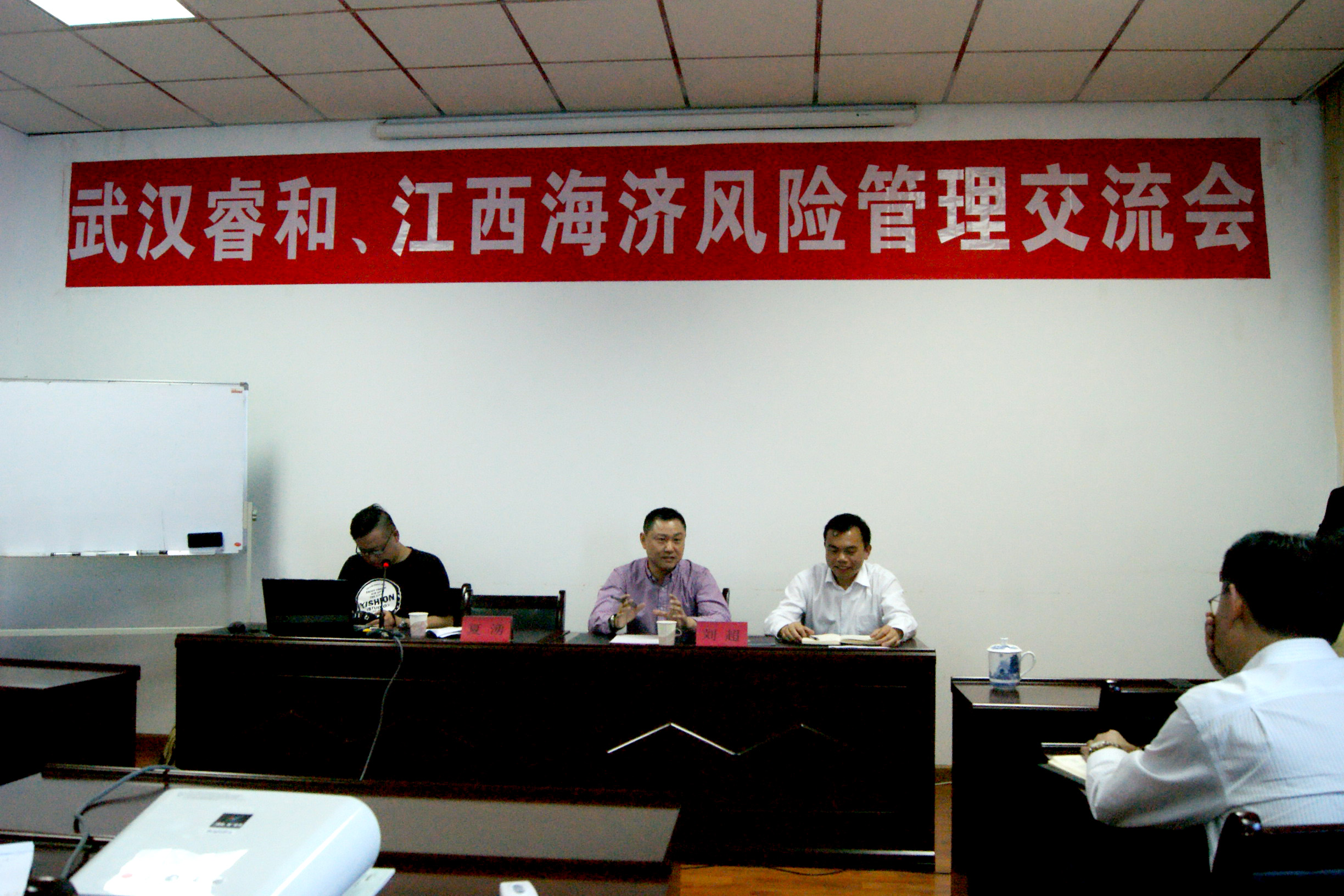 ??? 2014年4月10日,海濟(jì)租賃公司邀請(qǐng)武漢睿和擔(dān)保公司舉辦“武漢睿和與江西海濟(jì)風(fēng)險(xiǎn)管理交流會(huì)”, 睿和擔(dān)保總經(jīng)理劉超、風(fēng)控總監(jiān)夏湧應(yīng)邀到會(huì),海濟(jì)租賃公司總經(jīng)理柳習(xí)聰及全體員工共同參與此次交流會(huì)。